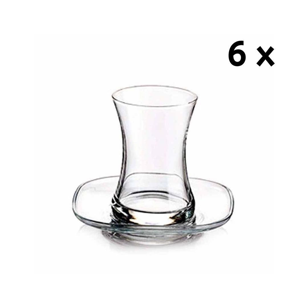 Set van 6 glazen met 6 schoteltjes